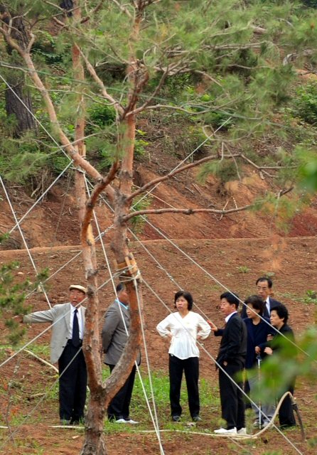 26일 오전 권양숙여사와 노건평씨가 지관으로 보이는 사람들과 함께 경남 김해 봉화 사저 뒤편 야산에 있는 고 노무현 전 대통령의 묘 자리를 둘러 보고 있다.