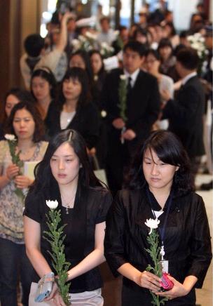 이들 분향소에는 25일 오전 7시부터 오후 1시 현재까지 총 15만5천956명이 다녀간 것으로 행안부는 잠정 집계했다.