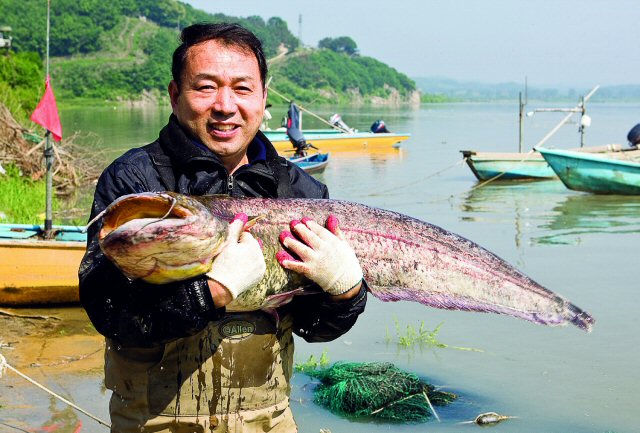 경기도 파주시 문산읍에서 매운탕 음식점을 하는 민태일(55) 씨가 무게 15㎏, 길이 117㎝ 초대형 메기를 사들인 뒤 팔지 않고 원래 잡혔던 곳인 임진강에 놓아주고 있다.