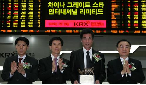URL복사 기사공유하기 스크랩 프린트 메일보내기 글씨키우기 한국거래소 코스닥시장본부는 29일 오전 서울사옥 종합홍보관에서 '차이나그레이트스타의 코스닥시장 신규상장기념식'을 개최했다. 왼쪽부터 최석종 NH투자증권 IB본부장, 박상조 한국거래소 코스닥시장본부장, 우쿤량 차이나그레이트스타 대표이사, 김재찬 코스닥상장법인협의회 부회장의 모습.(사진-연합뉴스) 저작권자 © 소비자가 만드는 신문 무단전재 및 재배포 금지 성승제 기자 다른기사 보기 URL복사 기사공유하기 주요기사 아이돌 콘서트 VIP석 앉으려면 '사운드 체크' 사실상 강제…팬들 뿔 [황당무계] 21살 여대생에게 '목돈 마련용' 이라며 치매보험 팔아 연속혈당측정기 '덱스콤 G7' 기기 오류에도 환불 책임 3각 핑퐁 HD조선해양 수주 목표 초과, 한화오션 100억달러 돌파 '好好' 박현주 4.2조, 김남구 2.3조...증권주 폭등으로 오너 주식가치 '껑충' [AI시대의 그늘-AI태풍이 분다④] 은행권, AI로 피싱 잡고 대출 심사