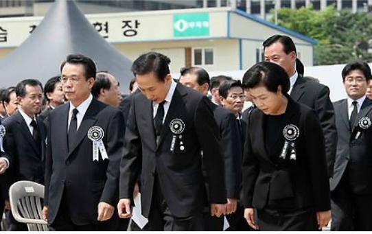 URL복사 기사공유하기 스크랩 프린트 메일보내기 글씨키우기 이명박 대통령과 김윤옥 여사가 29일 오전 경복궁 앞마당에서 거행된 故 노무현 전 대통령의 영결식 참석을 위해 영결식장에 입장하고 있다.한편 이 날 영결식에는 김영삼. 김대중 전 대통령이 참석한 가운데 전두환 전 대통령과 노태우 전 대통령은 건강상의 이유를 들어 불참소식은 전했다.(사진-연합뉴스) 저작권자 © 소비자가 만드는 신문 무단전재 및 재배포 금지 이경환 기자 다른기사 보기 URL복사 기사공유하기 주요기사 아이돌 콘서트 VIP석 앉으려면 '사운드 체크' 사실상 강제…팬들 뿔 [황당무계] 21살 여대생에게 '목돈 마련용' 이라며 치매보험 팔아 연속혈당측정기 '덱스콤 G7' 기기 오류에도 환불 책임 3각 핑퐁 HD조선해양 수주 목표 초과, 한화오션 100억달러 돌파 '好好' 박현주 4.2조, 김남구 2.3조...증권주 폭등으로 오너 주식가치 '껑충' [AI시대의 그늘-AI태풍이 분다④] 은행권, AI로 피싱 잡고 대출 심사