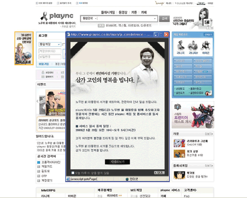 엔씨소프트는 29일 "노무현 전 대통령의 명복을 비는 의미에서 영결식이 진행 된 오전 10시 부터 오후 5시까지 7시간 동안 엔씨소프트의 '아이온'과 '리니지' 등 모든 게임 서비스를 일시 중단키로 했다"고 밝혔다.