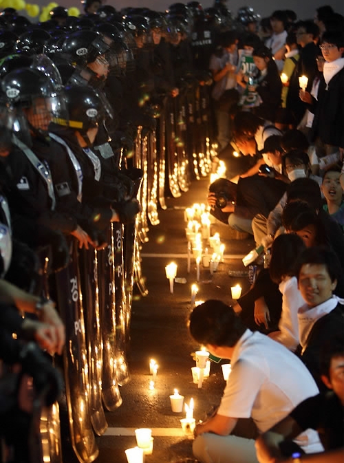 노제가 끝난 뒤 서울시청 앞 광장 주변을 전경 버스가 맴돌자 시민들이 도로에 뛰쳐 나와 전경 버스에 물통을 던지는 한편 일부 시민들은 '독재퇴진, 이명박 대통령 탄핵' 등을 외치며 청와대 쪽으로 행진하다 경찰과 마찰을 빚었다.