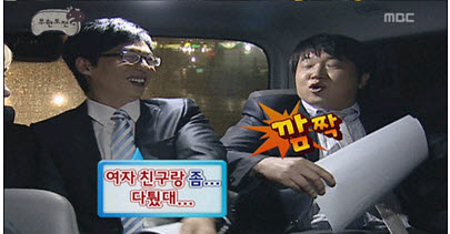 그러자 유재석은 "여자친구랑 좀 다퉜대"라고 깜짝 폭로를 했고 정형돈은 "카메라 도는 데 그 얘기를 왜 해?"라며 흥분했다.