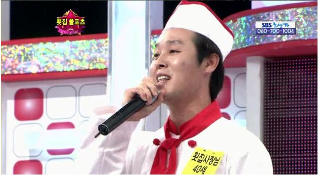 그는 음식 사장 답게 횟집 옷을 그대로 차려 입고 너무도 아름다운 목소리로 도니체티의 '남몰래 흐르는 눈물'과 베르디의 '축배의 노래'를 불러 출연자들을 감동시켰다.