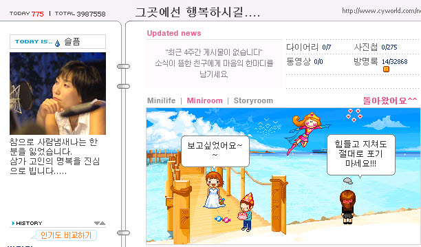 한편 미니홈피를 통해 노 전 대통령에 대한 추모의 뜻을 밝힌 연예인은 이 외에도 김민선, DJ DOC 이하늘, 엠씨더맥스 이수, 메이비, 남규리, 스윗소로우 등으로 개인 공간인 미니홈피를 통해 노 전 대통령을 추모했다.