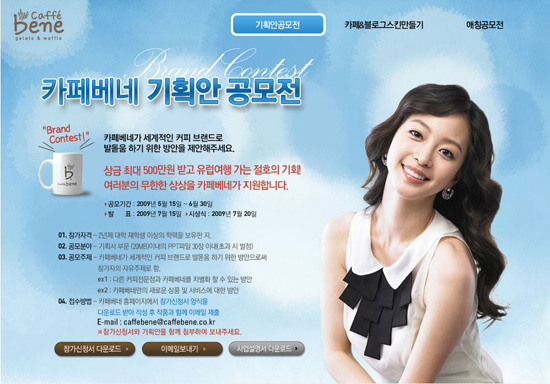 한편 카페베네 홈페이지에서 진행되는 한예슬 애칭 공모전은 6월 30일까지 진행되며, 당첨자는 7월 15일에 발표될 예정이다.