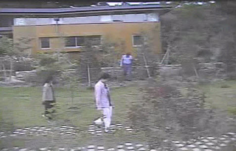 이어 서거 당일 오전 5시 47분께 노 전 대통령이 사저를 나와(사진) 사저 앞에서 기다리는 이모 경호관과 인사를 나눈 뒤 출발하는 모습이다.