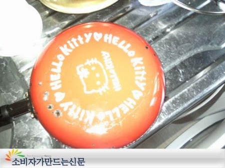 깜짝 놀란 김 씨가 물을 붓고 프라이팬 밑면을 살펴봤더니 코팅된 부분이 불에 녹아 벗겨져 있었다. 부분적으로 녹아버린 프라이팬의 코팅은 가스레인지에 눌어붙어 수리비까지 들게 된 형편이었다.