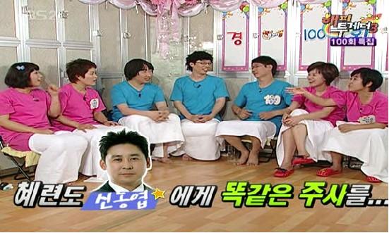 송은이는 "과거 혜련이도 신동엽에게 똑같은 주사를 부리곤 했다"고 폭로해 좌중을 폭소케 했다.
