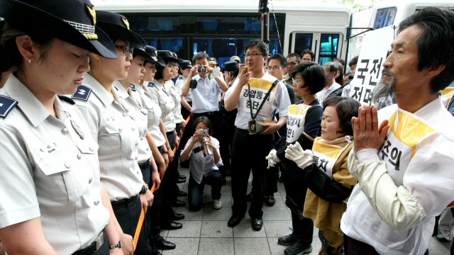 URL복사 기사공유하기 스크랩 프린트 메일보내기 글씨키우기 "어~남자 경찰보다 여경이 시위 더 잘 막네~" 강기갑 대표 등 민노당 의원들과 당직자들이 7일 대한문 앞에서 청와대 쪽으로 "강압 통치 중단과 민주주의 회복"을 주장하며 3보일배를 하다 서울시의회 앞에서 경찰과 대치하고 있다.(연합뉴스) 저작권자 © 소비자가 만드는 신문 무단전재 및 재배포 금지 조창용 기자 다른기사 보기 URL복사 기사공유하기 주요기사 아이돌 콘서트 VIP석 앉으려면 '사운드 체크' 사실상 강제…팬들 뿔 [황당무계] 21살 여대생에게 '목돈 마련용' 이라며 치매보험 팔아 연속혈당측정기 '덱스콤 G7' 기기 오류에도 환불 책임 3각 핑퐁 HD조선해양 수주 목표 초과, 한화오션 100억달러 돌파 '好好' 박현주 4.2조, 김남구 2.3조...증권주 폭등으로 오너 주식가치 '껑충' [AI시대의 그늘-AI태풍이 분다④] 은행권, AI로 피싱 잡고 대출 심사