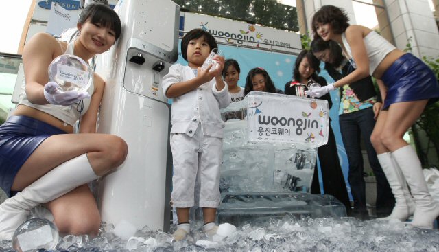 웅진코웨이는 얼음정수기 출시를 기념해 9일 을지로 내외빌딩 앞에서 '얼음 속 스와로브스키를 찾아라' 이벤트를 진행했다.