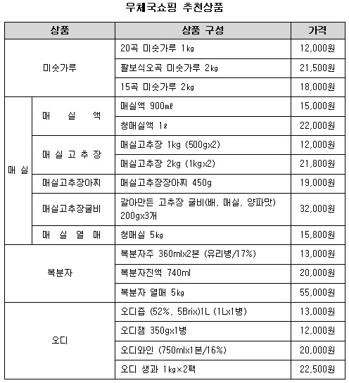 특히 우체국쇼핑에서 선보인 미숫가루, 복분자와 오디는 산지에서 직접 배송되기 때문에 시중가격보다 저렴하며 신선도가 뛰어난 것이 특징.