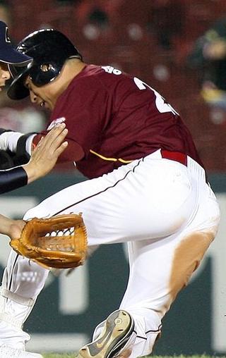 14일 부산 롯데전에서 히어로즈 송지만이 투구에 머리를 강타당하고도 상대를 배려하는 모습을 보였다.
