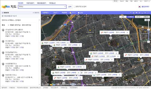 이용자는 다음 지도에서 전국 주유소 1만300여 곳의 휘발유.경유 가격정보를 브랜드별로 최저가 순으로 확인할 수 있다. 주유가격정보 데이터는 매 시간마다 최신 기준으로 실시간 업데이트 된다.