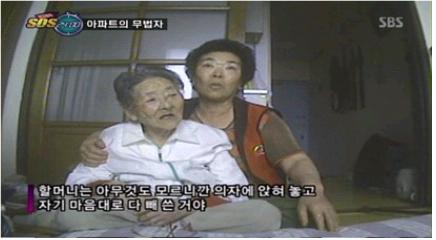 16일 SBS ‘긴급출동 SOS 24’에서는 독거노인을 상대로 행패를 일삼고 돈까지 가로챈 ‘깡패할머니’를 카메라에 담았다.