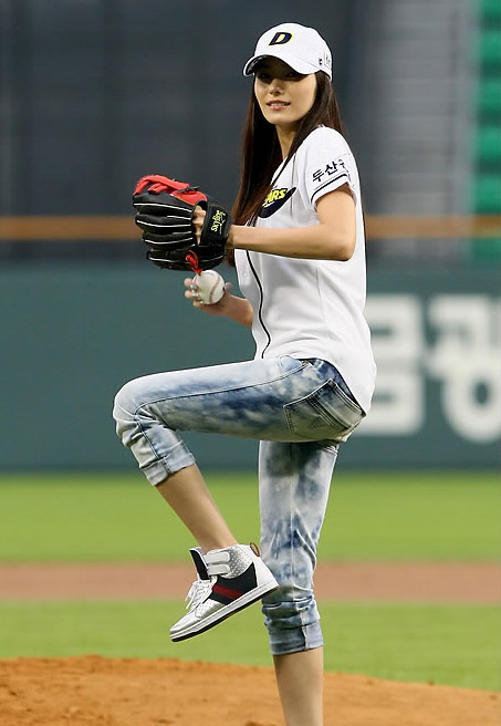 '바비인형' 한채영이 17일 잠실구장에서 열린 두산-기아전 시구를 했다.