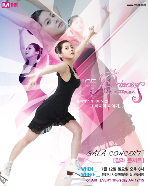 Mnet ‘아이스 프린세스’(연출 정유진)에서 피겨 스케이트에 도전중인 솔비는 7월 12일 안양 빙상장에서 ‘갈라 콘서트’를 열어 대중들 앞에서 피겨 연기를 펼치게 된다.