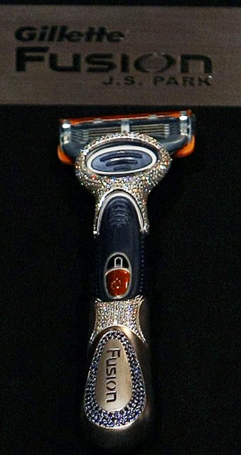 '퓨전 지성'란 이름이 붙은 이 면도기는 질레트사가 박지성 선수만을 위해 특별 제작한 것으로 면도기인 퓨전파워 제품을 도금한 뒤 다이아몬드로 세팅하고, 블루 다이아몬드로 손잡이 부분을 장식한 면도기다.