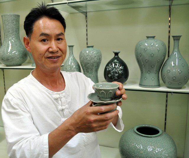 이 사진은 경기도 광주시 실촌읍에서 도강요를 운영하는 조태환(52)씨가 3년여의 연구끝에 재현에 성공한 '계영배(戒盈杯)'를 들어보이고 있는 장면다.연합뉴스가 찍은 사진이다.