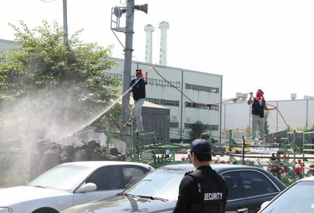URL복사 기사공유하기 스크랩 프린트 메일보내기 글씨키우기 "무더위에 용역하느라 고생 많지~시원한 오물 맛좀 봐" 쌍용자동차가 평택 공장 출근시위를 재개한 23일 노조원들이 사측이 고용한 경비용역업체 직원들에게 오물을 뿌리고 있다. (사진=연합뉴스) 저작권자 © 소비자가 만드는 신문 무단전재 및 재배포 금지 조창용 기자 다른기사 보기 URL복사 기사공유하기 주요기사 HD현대, 캐나다 잠수함 수주에 수조원대 절충교역 제안 황성엽 금융투자협회장 "코스피 5000, 자본시장 새 역사 출발점" 김동연 지사, 중장년부터 노년까지 도민 행복지킴이 나섰다...‘맞춤형 복지’ 확대 '가상자산' 거래정보도 신용정보 포함... 신정법 시행령 개정안 의결 이찬우 농협금융지주 회장 "금융의 본질은 신뢰, 내부통제 강화" 소비자주권시민회의 “KT, 소비자신뢰회복위원회·고객감시단 즉각 설치해야"