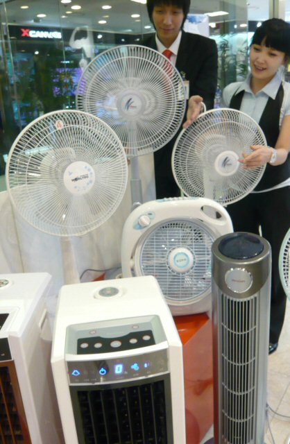 냉방 효율을 높이고 전기를 절약하기 위해 선풍기와 에어컨을 동시에 사용하는 가정이 증가하고 있다는 것.작년까지는 상품 구색을 갖추기 위해 선풍기를 판매했으나 올해는 가전회사와 함께 가격 혜택을 높인 선풍기를 기획상품으로 팔고 있다.