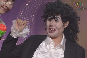 28일 방송된 KBS 2TV '개그콘서트'의 '분장실의 강선생님' 코너의 강유미가 마이클 잭슨 분장 때문에 된서리를 맞았다.