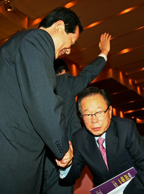 URL복사 기사공유하기 스크랩 프린트 메일보내기 글씨키우기 "세상에 이 보다 더 어색한 악수도 있을까?" 한나라당이 단독으로 소집된 임시국회가 야당의 등원거부로 반쪽으로 진행되고 있는 가운데, 29일 국회에서 열린 교육위원회 존치와 교육자치 토론회에서 만난 (왼쪽부터) 민주당 정세균 대표와 한나라당 박희태 대표가 악수를 하고 있다. (사진=연합뉴스) 저작권자 © 소비자가 만드는 신문 무단전재 및 재배포 금지 조창용 기자 다른기사 보기 URL복사 기사공유하기 주요기사 편의점도시락, 하루나트륨 권장량 70% 육박...소금 함량 많은 제품은? [소소한 경영] 오비맥주, 재생 플라스틱 사용 2배 확대 이재용 주식가치 2.5배, 최태원·정의선 2배 껑충 '好好 '생산적 금융' 대전환 어떻게?...KB·신한·하나·우리은행 4사4색 카드사, 대면 중도상환수수료율 최대 2% 달해 가상자산 하락 직격탄 맞은 업비트·빗썸, 법인 시장 공략 잰걸음