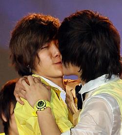 꽃미남 아이돌 그룹 ft아일랜드의 멤버 최종훈과 승승현이 팬클럽 창단식에서 귀여운 뽀뽀로 소녀팬들의 환호성을 자아냈다.