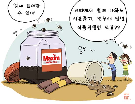 동서식품의 대표적인 커피브랜드 맥심에서 벌레가 잇따라 발견돼 소비자들이 불안에 떨고 있다. 벌레의 종류도 가지가지인데다 여러 종류의 제품에서 다발적으로 발견돼 소비자들은 제조상의 위생관리가 철저하지 못한 것 아니냐는 의혹을 제기하고 있다.