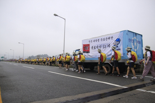 이번 국토지기 국토대장정 행사는 대학생(원)생 120명이 지난 26일 제주도에서 첫 발걸음을 내딛고, 오는 26일까지 30박 31일 동안 통일전망대까지 총 700km에 이르는 거리를 도보로 순례할 예정이다.