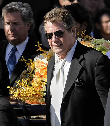 장례식에는 그의 전 남편이자 오랜 연인 라이언 오닐과 그의 아들 레드먼드 오닐(24)이 참석해 눈길을 끌었다.