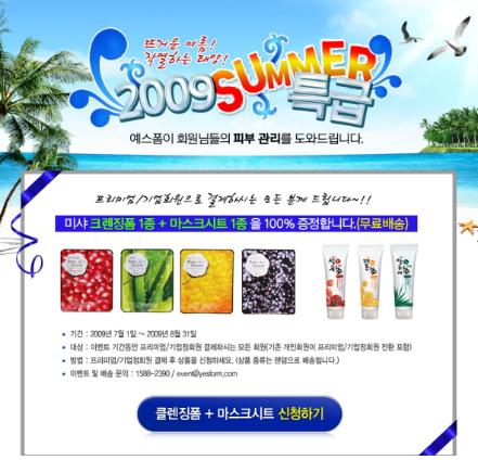 다음달 31일까지 두 달간 진행되는 이번 이벤트는 예스폼 프리미엄회원 혹은 정회원이 되는 모든 회원에게 미샤의 클렌징폼과 마스크시트팩을 무료로 제공하는 이벤트이다.