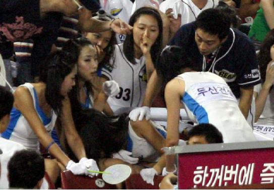 URL복사 기사공유하기 스크랩 프린트 메일보내기 글씨키우기 “파울타구 조심하세요” 3일 서울 잠실구장에서 열린 2009 프로야구 LG 트윈스와 두산 베어스 경기 7회말 1사 상황.두산 치어리더가 LG 이대형의 파울 타구에 맞아 쓰러져 있다. (사진=연합뉴스) 저작권자 © 소비자가 만드는 신문 무단전재 및 재배포 금지 스포츠연예팀 다른기사 보기 URL복사 기사공유하기 주요기사 겨울철 전기장판 일반 폼·라텍스 매트리스와 사용하면 화재 위험성 높아...예방 대책 ‘필수’ 하이트진로 필라이트, 지난해 3억4000만 캔 출고 '역대 최대' 농심 신라면, 美 간판 토크쇼 '지미 키멜 라이브'에서 "WOW" HDC, 신임 대표에 도기탁 HDC현대산업개발 재경부문장 선임 김재훈 경기도의원, 고립·은둔 청년 지원 방안 모색…“제도 개선·예산 지원 뒷받침할 것 ” 편의점도시락, 하루나트륨 권장량 70% 육박...소금 함량 많은 제품은?