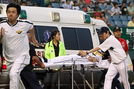 손 선수는 응급처치 뒤 앰블런스에 실려가는 도중 의식을 회복했다.