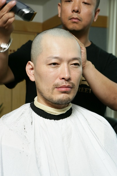 삭발 전 다소 긴장했던 것과 달리 막상 삭발을 시작하자 편안한 미소를 지으며 프로근성을 과시했다.