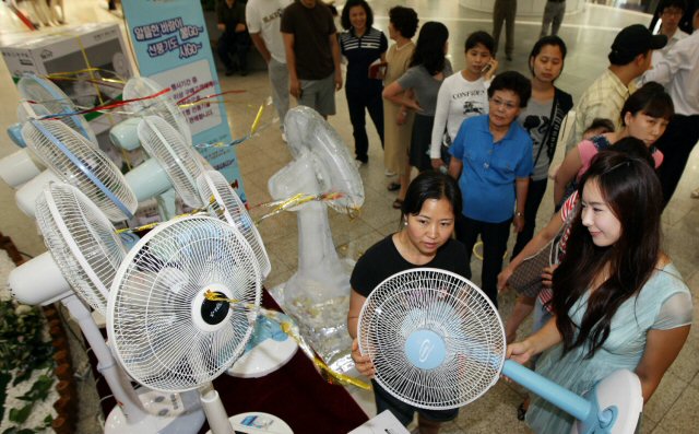 URL복사 기사공유하기 스크랩 프린트 메일보내기 글씨키우기 "선풍기 한대 5만원에 골라 골라" 서울 구의동 강변 테크노마트는 13일 여름철을 맞아 스탠드 선풍기를 5천원에 판매하는 행사를 하고 있다. 16일까지(14일 정기휴무) 5만원 이상 구매한 고객에게 100대 한정으로 판매한다.(사진=연합뉴스) 저작권자 © 소비자가 만드는 신문 무단전재 및 재배포 금지 백진주 기자 다른기사 보기 URL복사 기사공유하기 주요기사 엔씨소프트 리니지W, 신규 월드 '아리아' 사전 캐릭터 생성 진행 크래프톤, '프로젝트 제타' 커뮤니티 테스터 모집 벤츠, 고성능 GLS 모델 첫 선...최대출력 612마력 'AMG GLS 63 4MATIC+' 출시 다올투자증권 지난해 순이익 423억 원…흑자전환 성공 LG생활건강, 지난해 영업이익 1707억 원 62.8%↓..."고성장 채널 집중 육성" 연간 영업익 국내 '톱' 꿰찬 SK하이닉스, HBM 업고 날았다