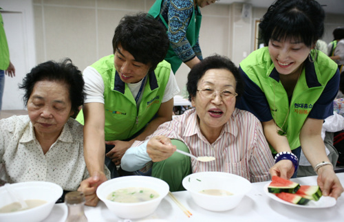 16일 현대홈쇼핑(www.hmall.com)은 한국음식민간외교증진협회와 함께 서울 강동구 천호3동 주민센터에서 열린 ‘희망의 우리밥상나누기’ 행사를 후원하고 임직원 20여명이 자원봉사자로 참여해 무의탁 노인들을 위한 점심식사를 무료로 제공했다.