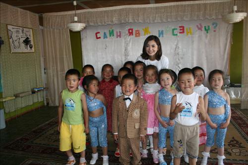지난 18일(현지시각) 학용품 세트와 의류, 태권도DVD, 과자 등을 전달하고 아이들과 시간을 보내기 위해 장서희가 몽골국립고아원을 방문하자 길게 줄을 서 있던 180명의 어린이들이 “은재~ 은재”를 외치며 열열이 환영했다.
