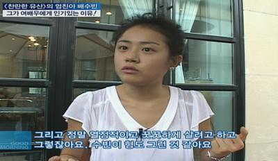 이어 “배수빈의 첫인상은 근사했다. 얼굴도 작고 키도 크고 몸도 좋다. 겪어 본 배수빈은 순수하고 깨끗한 사람이다. 때로는 내가 보호해 줘야 할 것 같은 느낌마저 들었다”고 밝혔다.