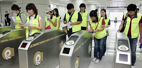 그런가하면 역사 내부에는 교통약자의 이동편의를 위한 세심한 배려도 돋보인다. 우선 모든 역 화장실에는 파우더룸과 기저귀 교환대가 설치돼 있고, 어린이 전용 화장실도 있어 아이와 함께 외출한 엄마들이 편리하게 이용할 수 있게 했다.