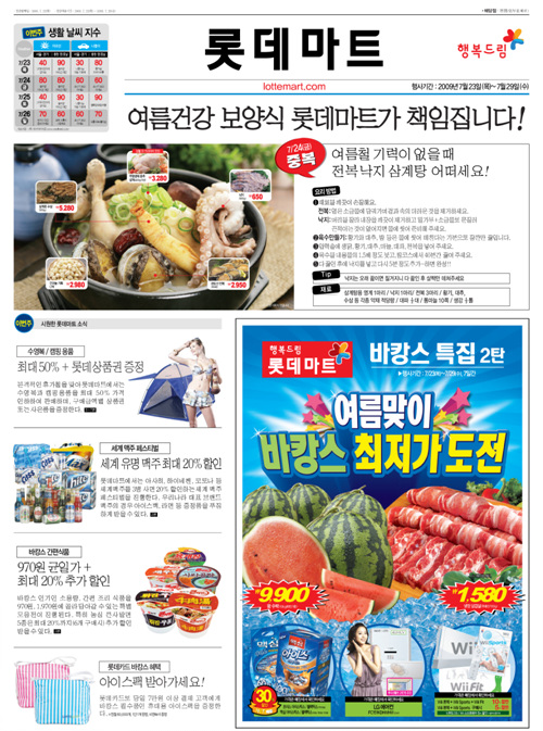 우주희 롯데마트 마케팅부문장은 “쿠폰이 나열된 전단을 벗어나 바캉스와 중복을 앞둔 소비자들에게 상품 정보뿐 아니라 유용한 생활 정보까지 제공한다는 취지로 전단을 새롭게 꾸몄다”고 밝혔다.