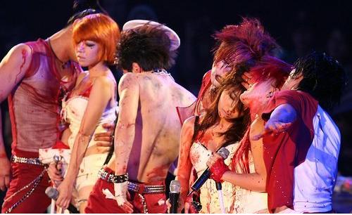 이런 반응에 소속사측은 선정성 논란을 의식하며 지상파 방송 심의 통과를 걱정하고 있는 것으로 알려졌다. (사진=연합뉴스, '2008 MKMF'무대)