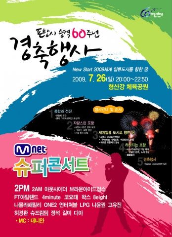 기대를 모으고 있는 5부 ‘경축행사’에는 음악전문 케이블방송 M-net의 주관으로 가수 데니안이 MC로 진행하는 ‘Super Concert'가 열리며, 2AM, 2PM, 4minute, 8eight, 고유진, 길미, 나몰라패밀리, 나윤권, 디아, 브라운아이드걸스, 슈프림팀, 아웃사이더, 언더쳐블, 왁스, 정석, 코요태, 허경환, FT아일랜드, LPG, ONE2 등의 유명 가수들이 대거 출연할 예정이다.