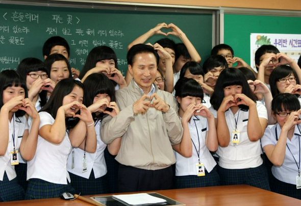 이명박 대통령이 지난 24일 '친 서민 중도' 행보의 일환으로 충청북도 기숙형 고등학교인 괴산고를 방문해 '과외없는 학교 교육'등에 대해 이야기하고 기념사진을 촬영한 바 있다.