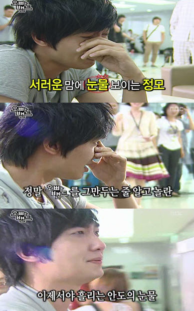 이들은 10분 지각한 정모와 성민을 갑자기 무섭게 다그치며 이런 식으로 할꺼면 ‘오빠밴드’에서 빠지라고 종용했고 이에 깜짝 놀란 정모가 난처한 표정을 지은 것.