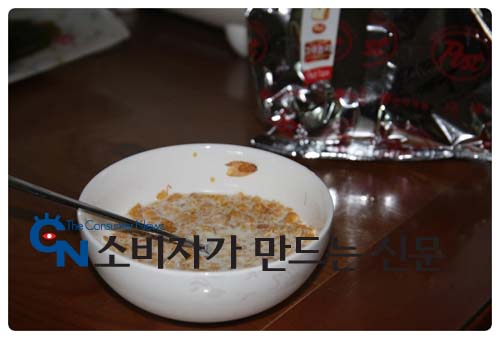 안양시 호계3동에 사는 회사원 백 모(남.34세)씨는 지난 21일 아침식사 시간이 촉박해 3살 아들이 먹다 남긴 시리얼을 먹던 중 불쾌한 이물감을 느끼고 시리얼을 뱉었다. 이물질을 살펴보니 놀랍게도 군데군데 다리가 붙어있는 2cm정도 크기의 튀겨진 나방시체였다.