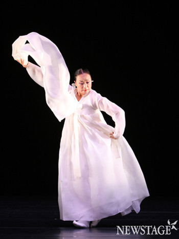 ▲ 김매자의 전통춤사위와 살풀이춤을 현대적으로 재해석 한 지전살풀이춤,