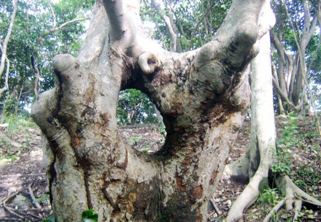 전남 진도군 의신면 접도리 남망산 웰빙 등산로에 있는 여성 성기 모양의 여성 느티나무.