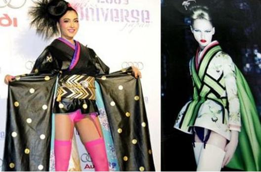 일부 네티즌들의 주장에 따르면 명품 브랜드 크리스찬 디올(Christian Dior)의 디자이너 존 갈리아노가 2008년 선보인 ‘기모노의 아랫부분을 짧게 해 속옷을 의도적으로 노출한 디자인’의 작품과 유사하다는 것.
